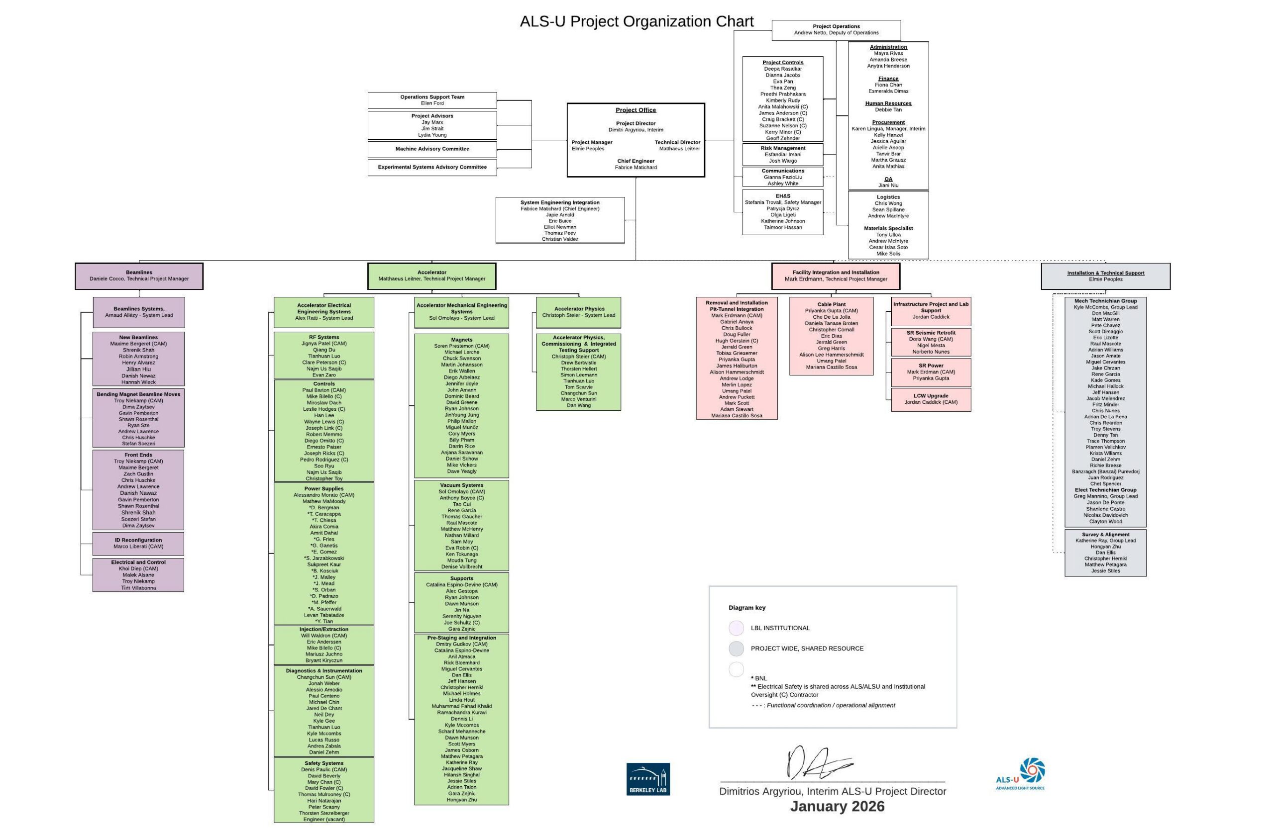 The ALS-U Project detailed organization chart, last updated January 2026. Click on the image to view a full-sized version.