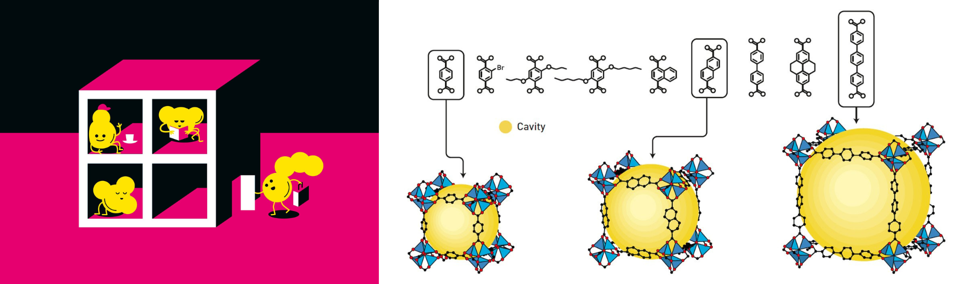 The exploration bore fruit, the failures have faded, and the success is sweet. Alongside Susumu Kitagawa and Richard Robson, Yaghi was selected for the 2025 Nobel Prize in Chemistry for the development of metal–organic frameworks (MOFs). MOFs comprise metal ions and organic molecules that are organized to form crystals containing large cavities. Their structure creates a large surface-area-to-volume ratio, allowing MOFs to absorb huge amounts of gases and liquids in a relatively tiny volume.