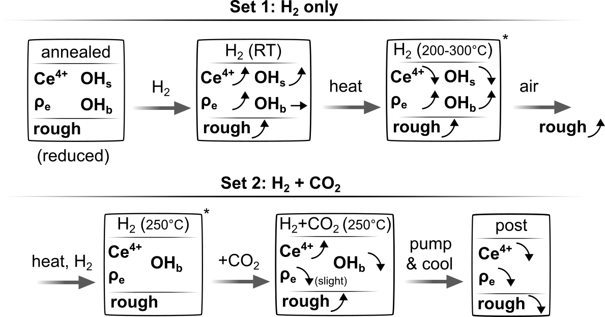 The researchers examined nanopatterned ceria exposed to hydrogen and oxidizing environments. They found that hydrogen incorporation—resulting in the formation of hydride and oxyhydroxide species—drives significant restructuring of the material’s surface, especially when oxygen is present from air or carbon dioxide. As ceria absorbs hydrogen to facilitate reactions, its interior becomes denser while its surface roughens, reflecting a coupled shift in both oxidation state and physical morphology. These findings indicate that defect-rich microstructures play a key role in enabling subsurface hydrogen diffusion at lower temperatures than previously anticipated.